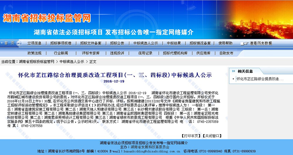 2016年12月19日,湖南省正陽光電科技有限公司成功中標懷化市芷江路綜合治理體質改造工程項目(四標段)。