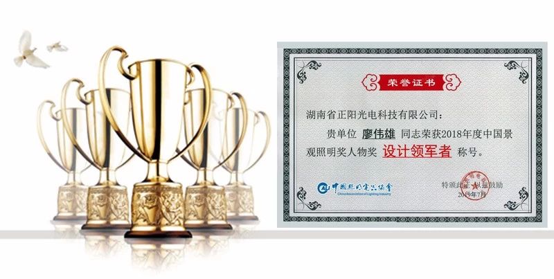 在中國景觀照明獎頒獎典禮環(huán)節(jié),對2018年度“中國景觀照明獎”獲獎個人及企業(yè)進行表彰頒獎,湖南省正陽光電科技有限公司董事長廖偉雄獲得了2018年度中國景觀照明獎人物獎“設計領軍者”稱號。此次獎項評選旨在倡導景觀照明產(chǎn)業(yè)鏈重品質(zhì)、重信譽、重環(huán)保、重科技創(chuàng)新的理念,引導和促進景觀照明產(chǎn)業(yè)健康發(fā)展。