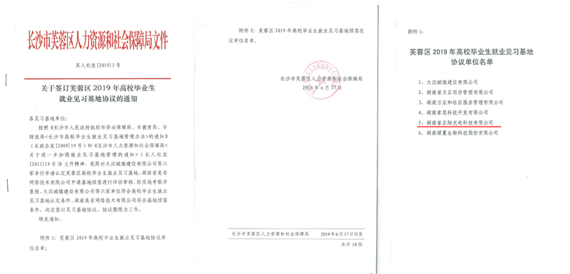 2019年6月17日,長(zhǎng)沙市芙蓉區(qū)人力資源和社會(huì)保障局下發(fā)紅頭文件“芙人社發(fā)[2019]3號(hào)”,僅六家芙蓉區(qū)單位成為高校畢業(yè)生就業(yè)見習(xí)基地,湖南正陽為其中一家,并與我司簽...