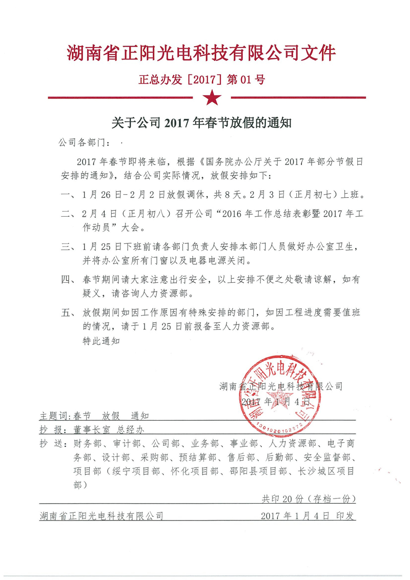 關于公司2017年春節(jié)放假通知